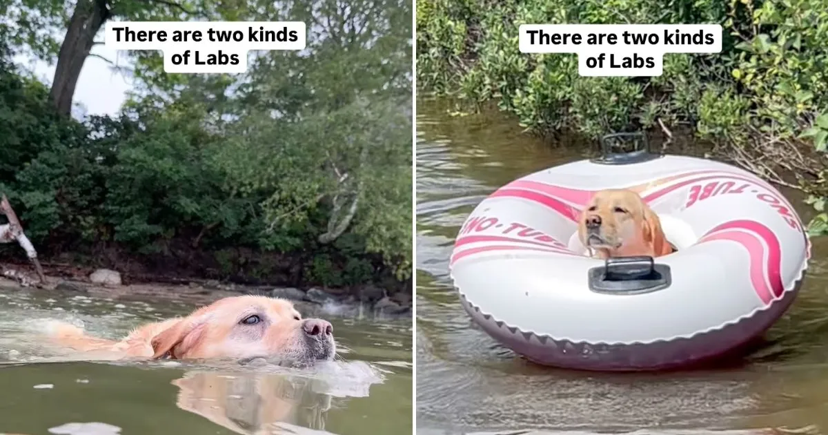 The funny new video evidently showed the same and noted that “there are two kinds of Labs.” The clip began with Stella, the “Queen of Leaves,” in action mode as she bravely swam through the water. After displaying the pup’s unwavering focus, the video transitioned to “Unstable” Mabel, who seemed to be merely there for the vibes and to soak up the sunshine. The sweet girl left all the action to her sibling and focused on enjoying her fun outdoor time with a tube float.